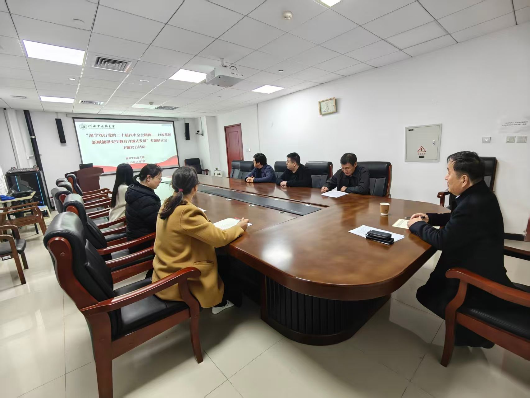 本网讯(文图/栗彦芳)2025年11月7日,研究生院党支部在俊学楼A211开展“深学笃行二十届四中全会精神——以改革创新赋能研究生教育内涵式发展”主题党日活动。研究生院全体党员参会研讨,支部书记陈随清主持本次活动。